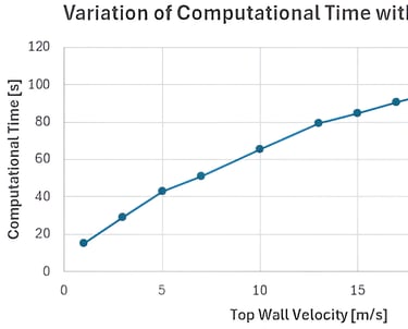 Computational time increased approximately linearly with lid velocity due to slower SOR convergence