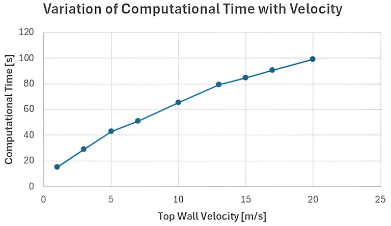 Computational time increased approximately linearly with lid velocity due to slower SOR convergence